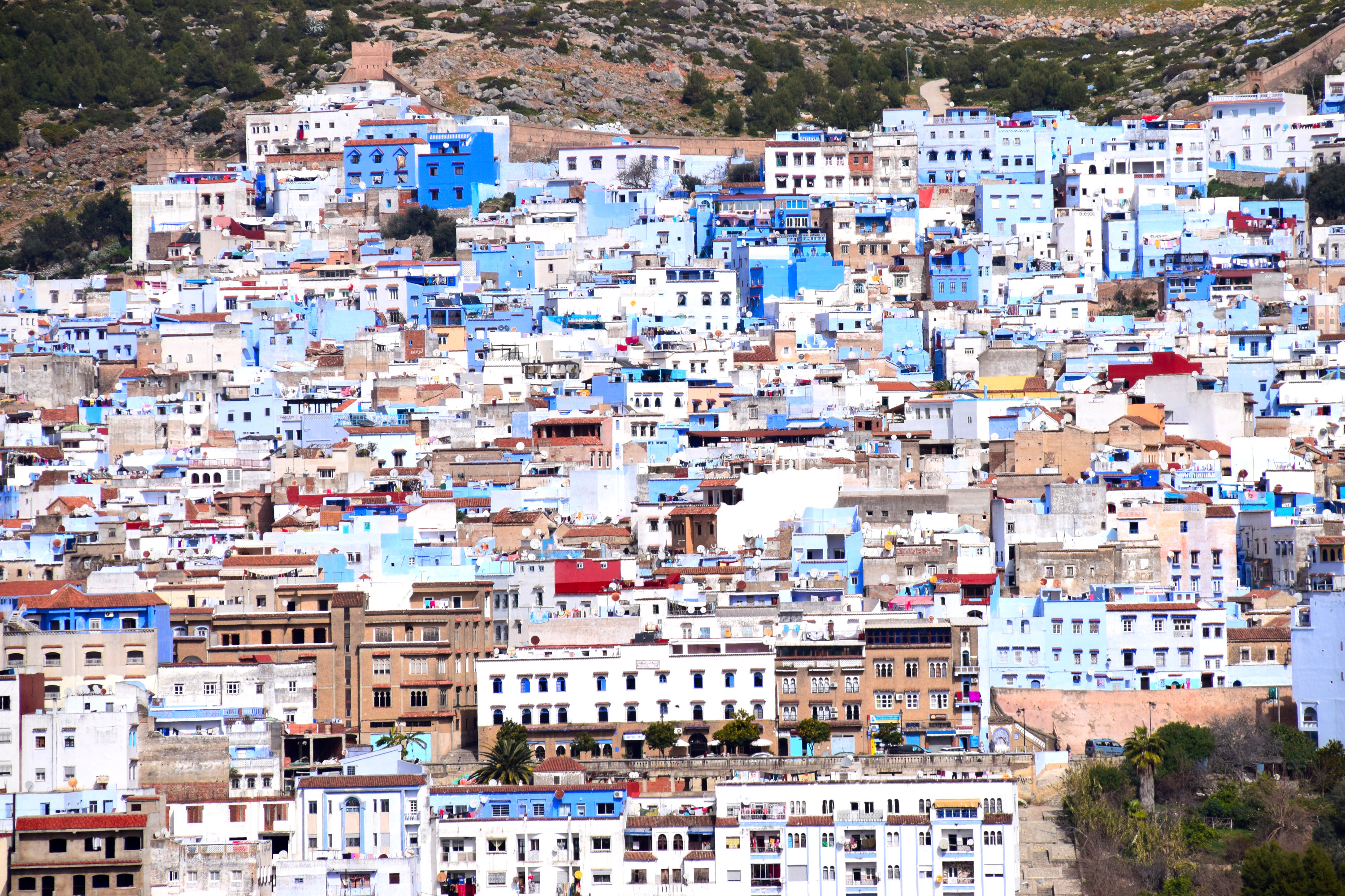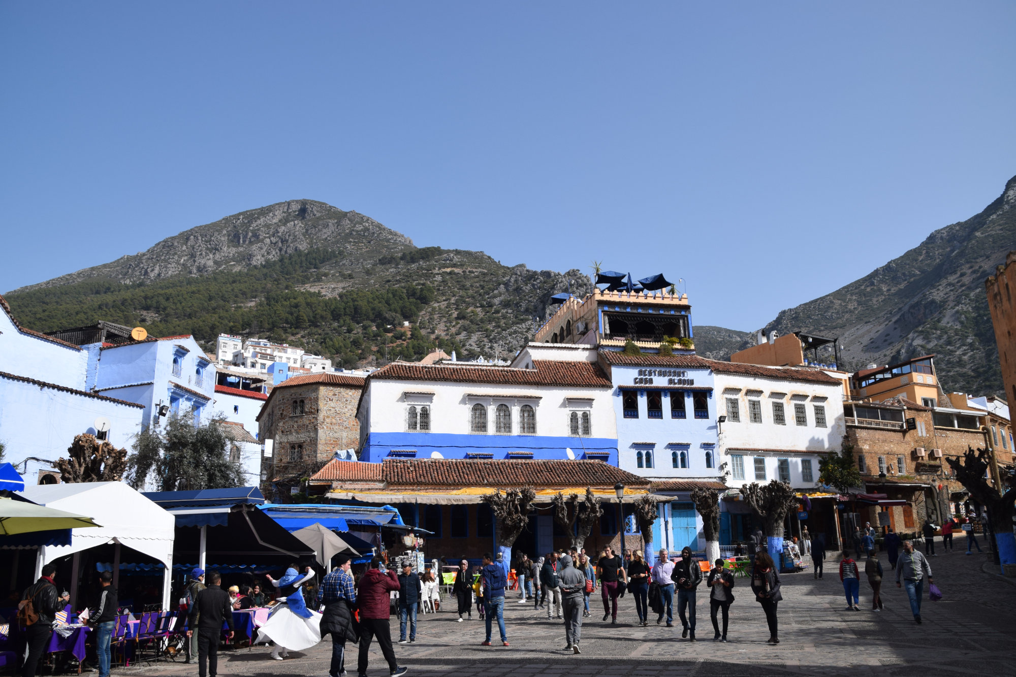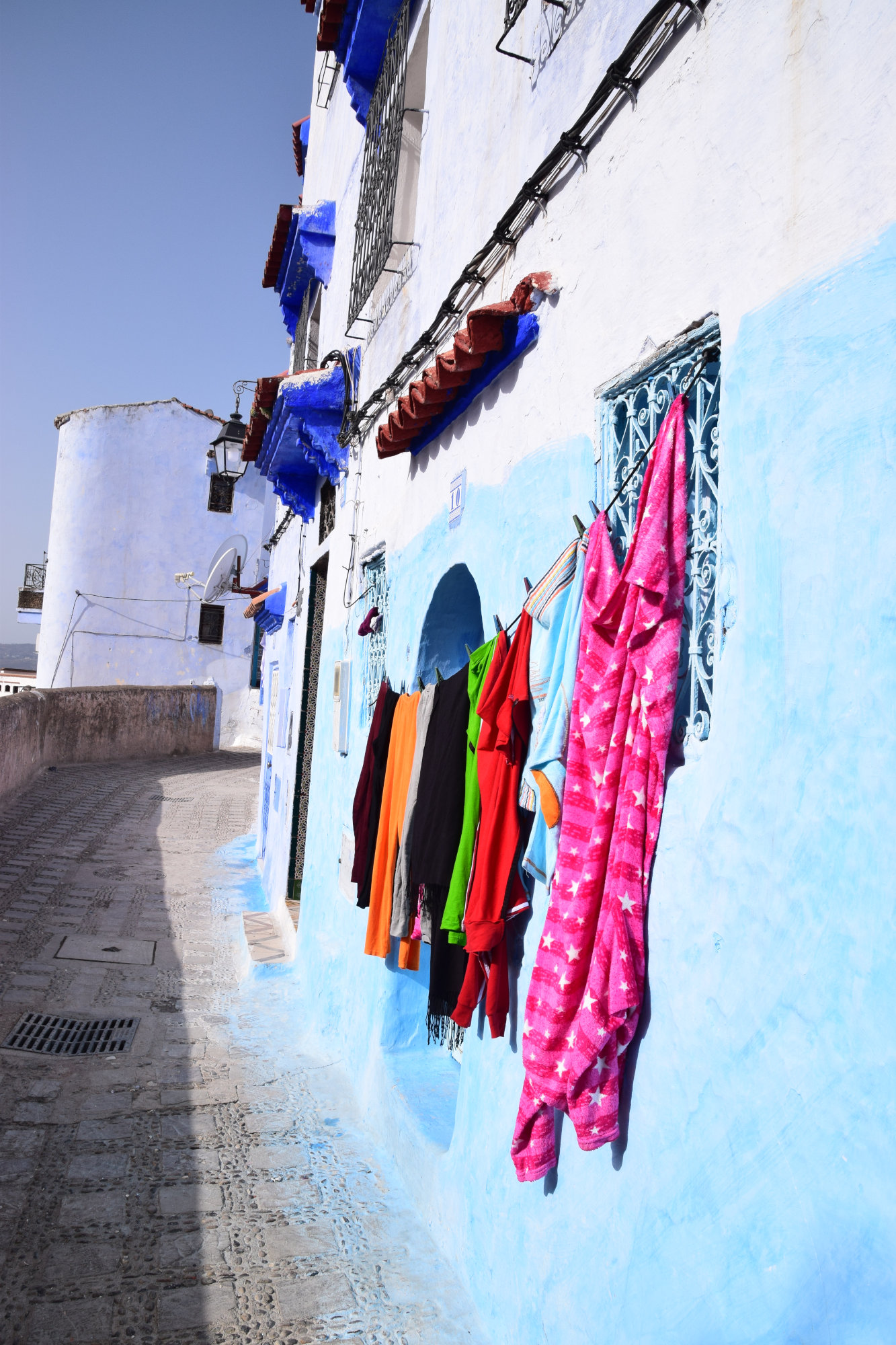 Nach unserer ersten Nacht auf marokkanischen Boden, machen wir uns auf in Richtung Chefchaouen – eine malerisch am Berghang gelegene Stadt, die schon von Weitem in den verschiedensten Blautönen leuchtet und einen trotz einer Horde chinesischer Touristen schnell in ihren Bann zieht. Man kann hier ewig durch schmale Gassen schlendern und hinter jeder Ecke wartet ein neues Fotomotiv darauf festgehalten zu werden. Nur die Einheimischen scheuen sich vor stimmungsvollen Fotos und ducken sich bei der geringsten Andeutung eines auf sie gerichteten Fotoapparates weg. Dies liegt zum einen daran, dass laut Koran die Abbildung eines Menschen verboten ist, zum anderen hängt dies mit dem Glauben der örtlichen Bevölkerung zusammen, dass die Kamera den Geist gefangen nimmt – und wer möchte das schon? Daher entscheiden wir uns fleißig die Personen zu fragen, bevor wir den Auslöser abdrücken oder nur Personen von hinten zu fotografieren.