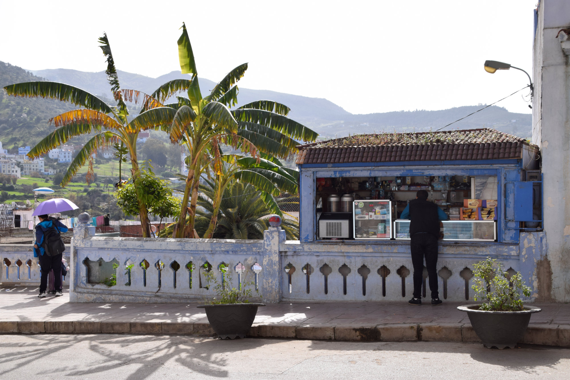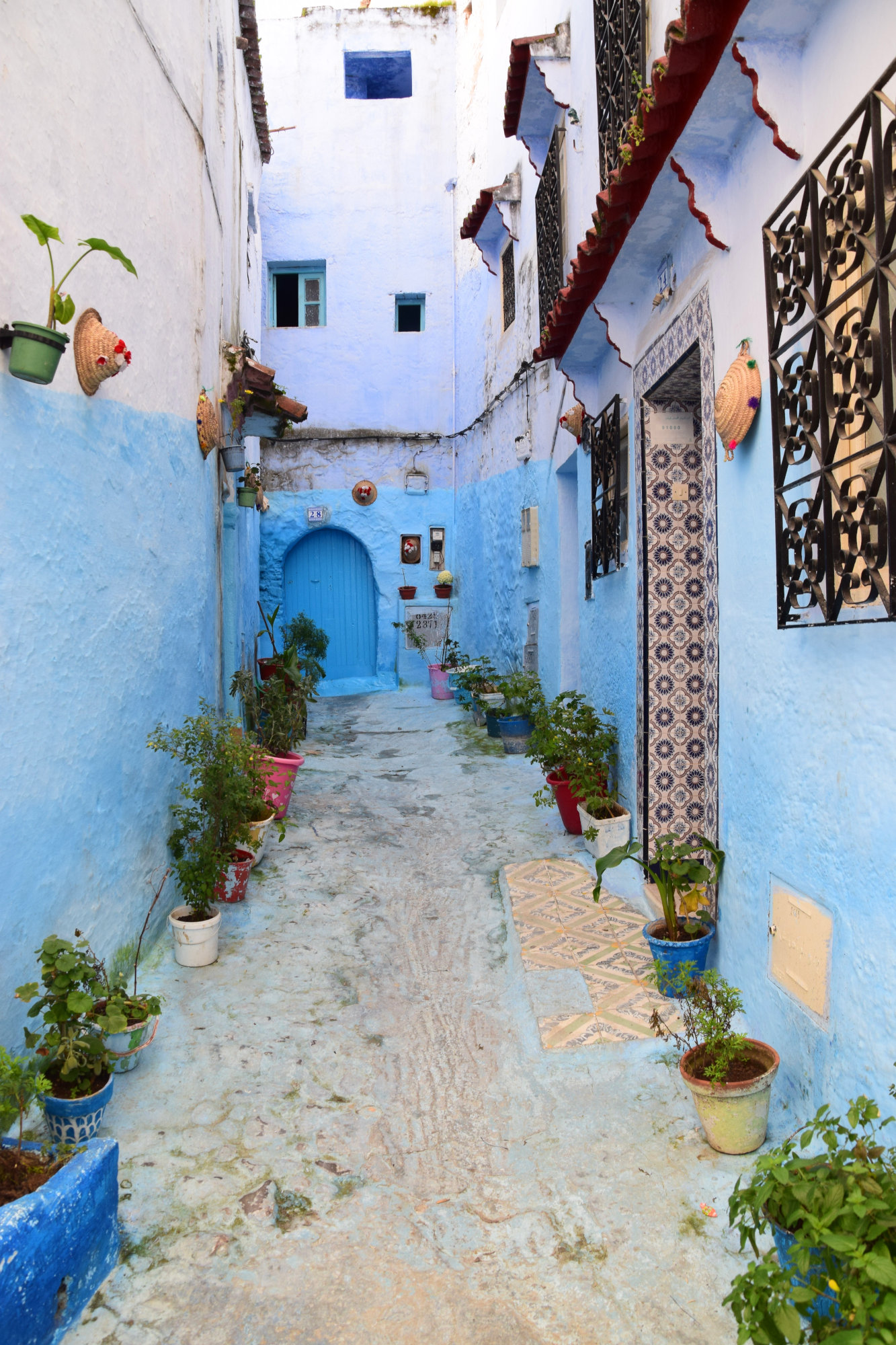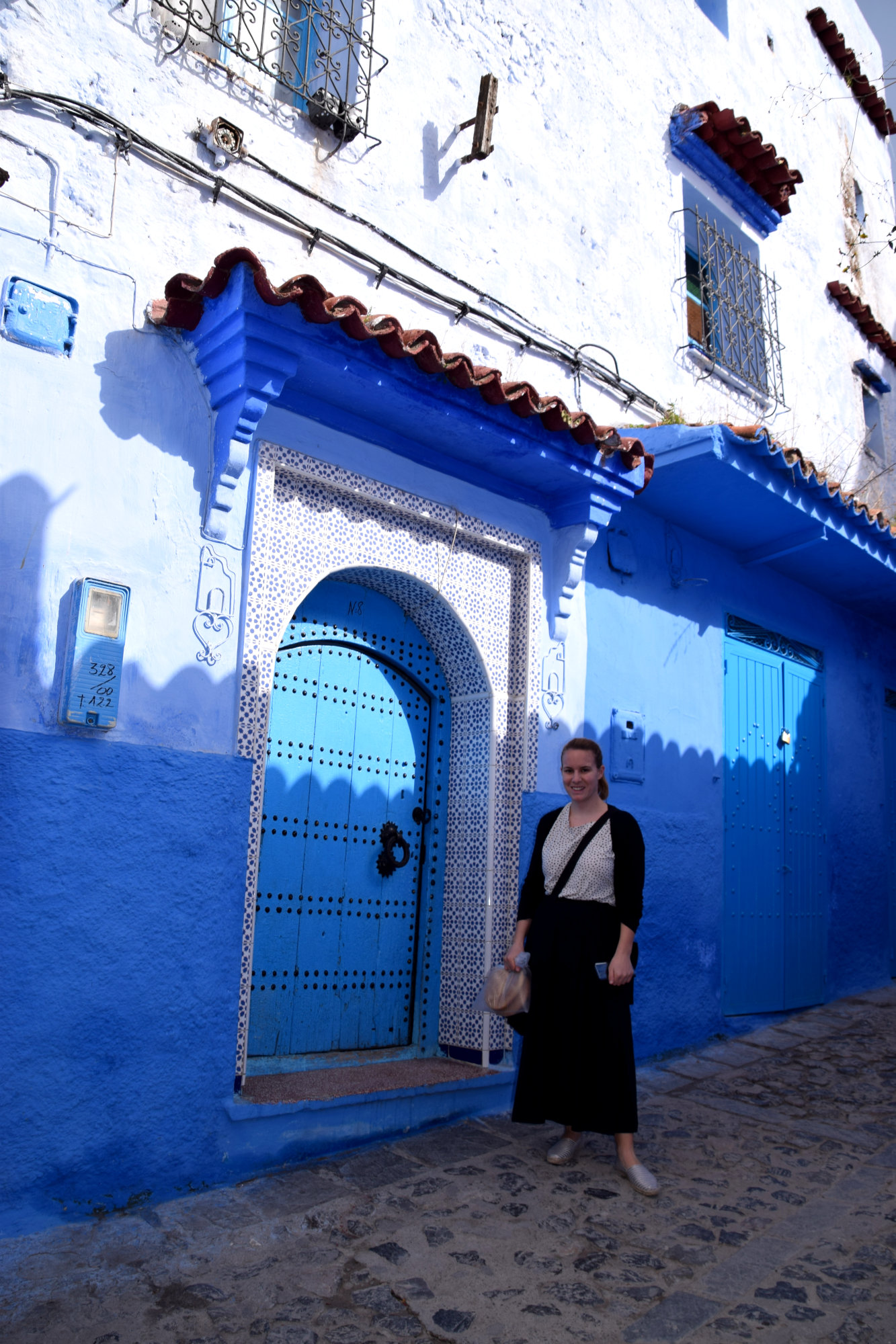 Nach unserer ersten Nacht auf marokkanischen Boden, machen wir uns auf in Richtung Chefchaouen – eine malerisch am Berghang gelegene Stadt, die schon von Weitem in den verschiedensten Blautönen leuchtet und einen trotz einer Horde chinesischer Touristen schnell in ihren Bann zieht. Man kann hier ewig durch schmale Gassen schlendern und hinter jeder Ecke wartet ein neues Fotomotiv darauf festgehalten zu werden. Nur die Einheimischen scheuen sich vor stimmungsvollen Fotos und ducken sich bei der geringsten Andeutung eines auf sie gerichteten Fotoapparates weg. Dies liegt zum einen daran, dass laut Koran die Abbildung eines Menschen verboten ist, zum anderen hängt dies mit dem Glauben der örtlichen Bevölkerung zusammen, dass die Kamera den Geist gefangen nimmt – und wer möchte das schon? Daher entscheiden wir uns fleißig die Personen zu fragen, bevor wir den Auslöser abdrücken oder nur Personen von hinten zu fotografieren.