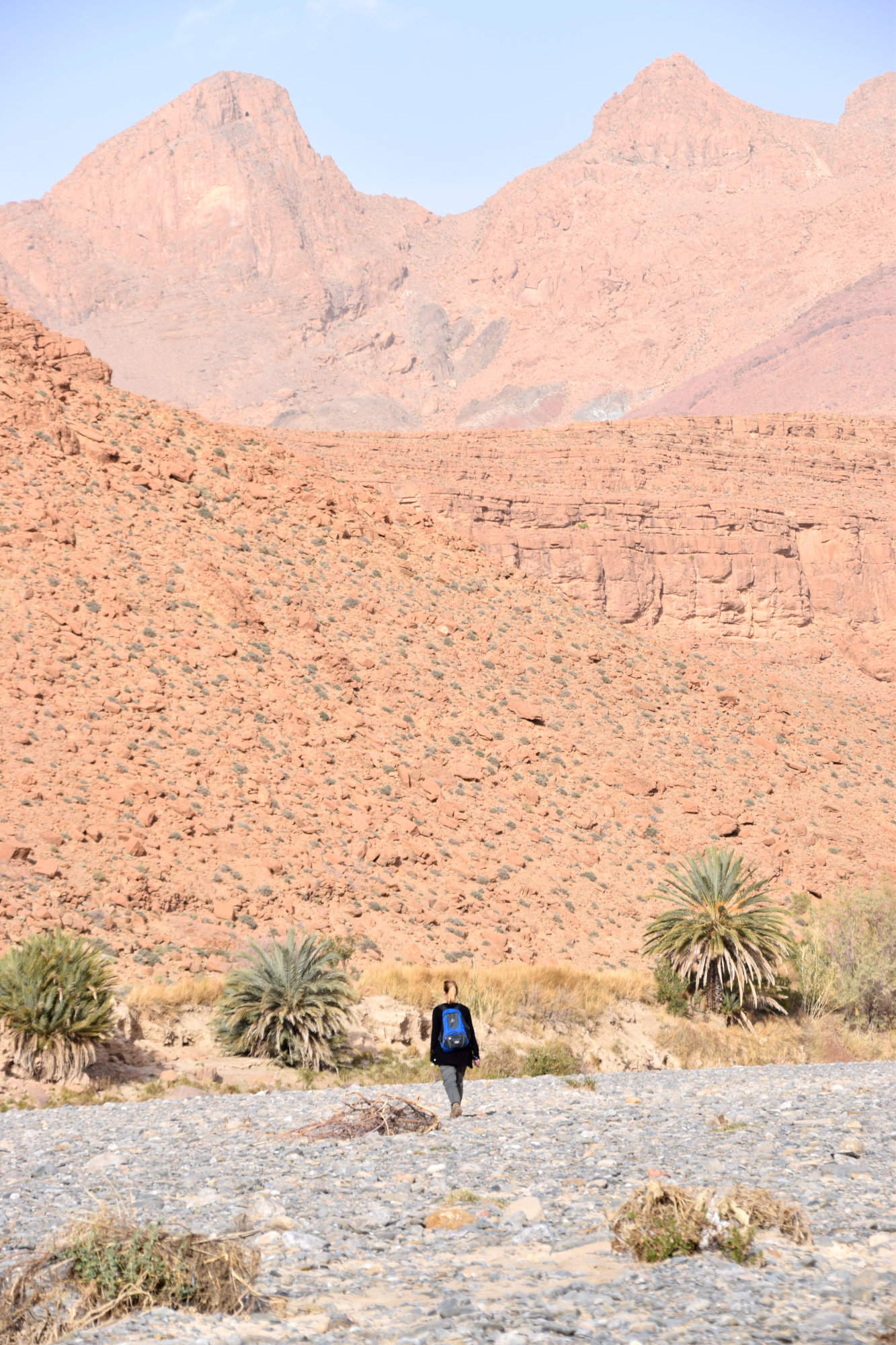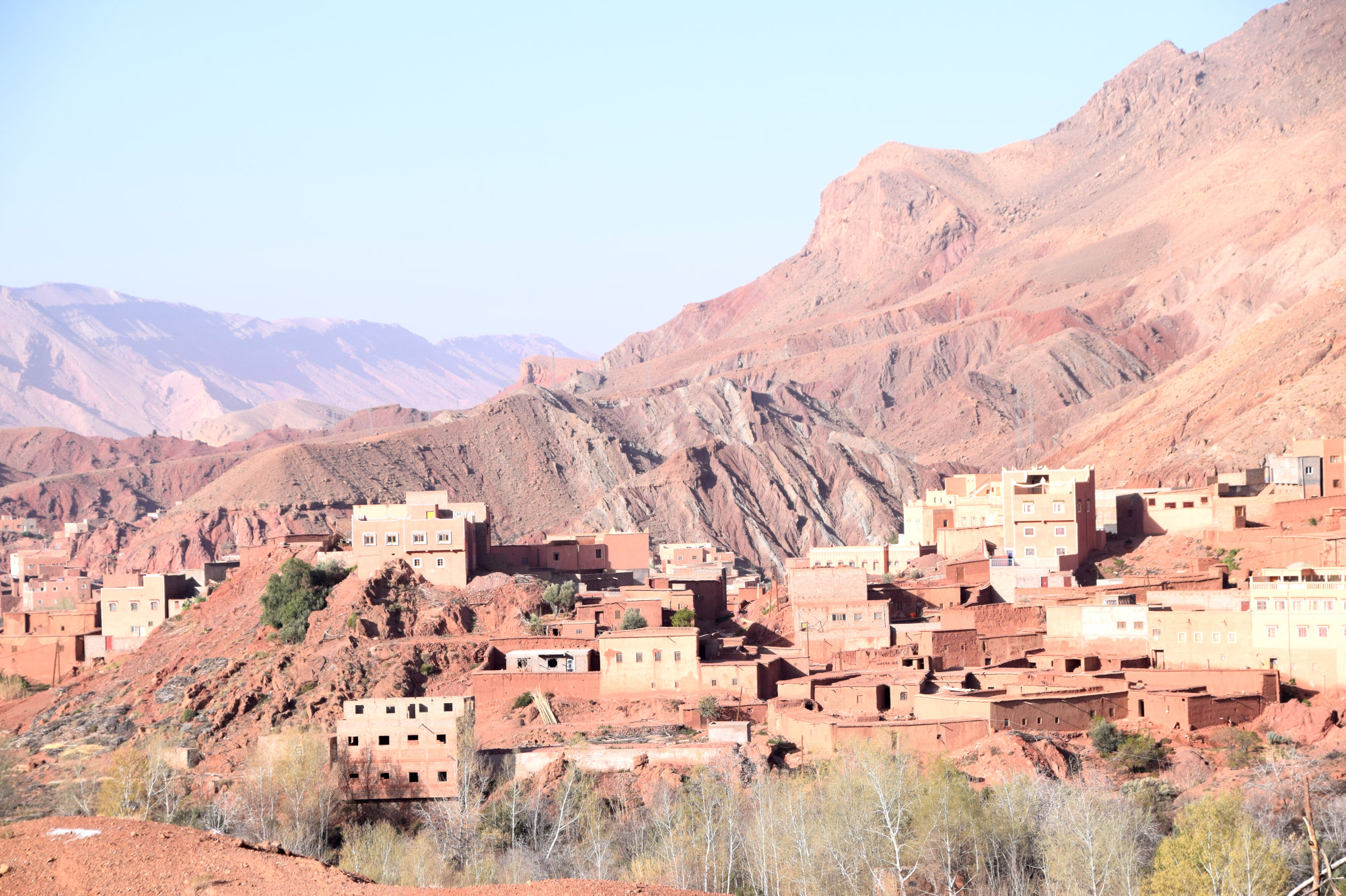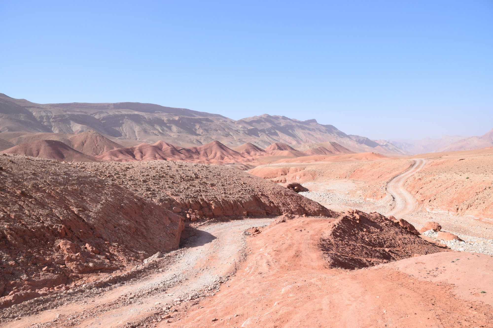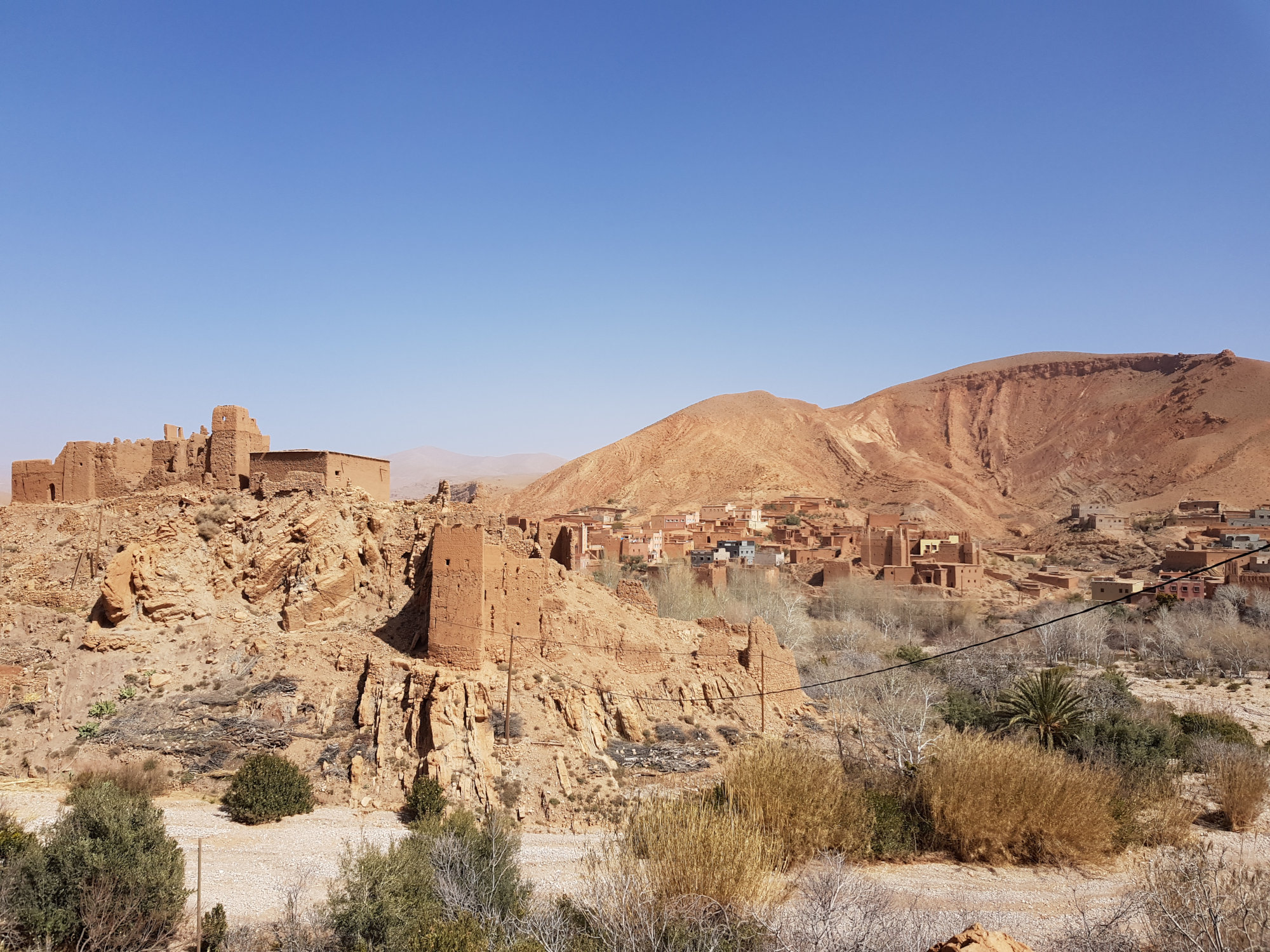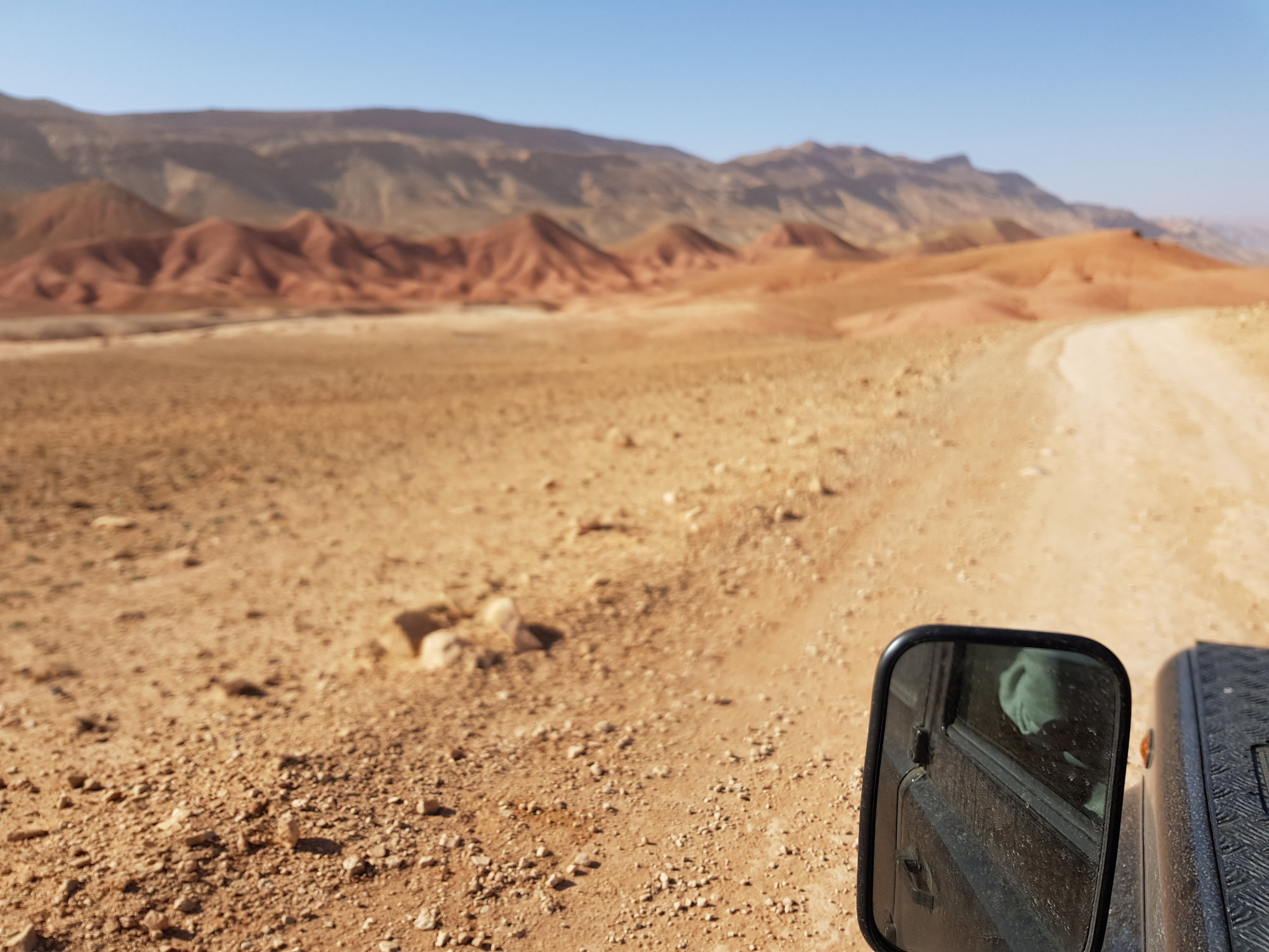 Am nächsten Morgen queren wir von der Dadesschlucht aus über eine sandige Piste zum Rosental, das aufgrund seiner Rosenblüte im April/Mai seinen Namen trägt. Auch diese Strecke beeindruckt uns landschaftlich, während wir immer wieder Normaden-Zelter passieren, die hier ihre Schaf- & Ziegenherden überwintern.