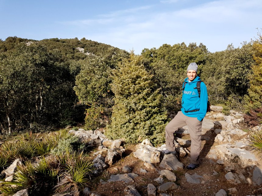 Auf der Weiterfahrt entdecken wir ein Schild, das einen Wanderweg ankündigt. Laut Reiseführer sollen die Wanderungen gut ausgeschildert und damit auch ohne lokalen Guide machbar sein. Also Turnschuhe an und los geht die Wanderung, die uns mit den angekündigten 1,5 Stunden Fußmarsch mehr als machbar erscheint. Leider war das Schild am Parkplatz die einzige „gute Markierung“, die uns auf unserer gesamten Wanderung begegnet. Nach kürzester Zeit laufen wir Pfade, die wir als richtig interpretieren, sich aber immer wieder als Ziegen-Pfade erweisen und oft im Nirvana enden. So arbeiten wir uns von einem kleinen Hügel zum Nächsten und haben uns in kürzester Zeit verlaufen. Zwar können wir uns immer wieder orientieren und sehen auch regelmäßig Teile der Teerstraße, doch immer wieder versperren Sträucher, unpassierbare Steine o.ä. den Weg. So brauchen wir insgesamt das Doppelte der auf dem Schild ausgeschriebenen Zeit, um schließlich wieder am Auto anzukommen. Trotz der paar Extra-Meilen war es aber eine grandiose Wanderung, die uns richtig gut gefallen hat. Allerdings ist uns jetzt klar, dass die Autorin des Reiseführers wohl kaum eine der Wanderungen persönlich unternommen hat, sondern vielmehr nur an den Schildern vorbeigefahren sein muss bei Ihrer Recherche.
