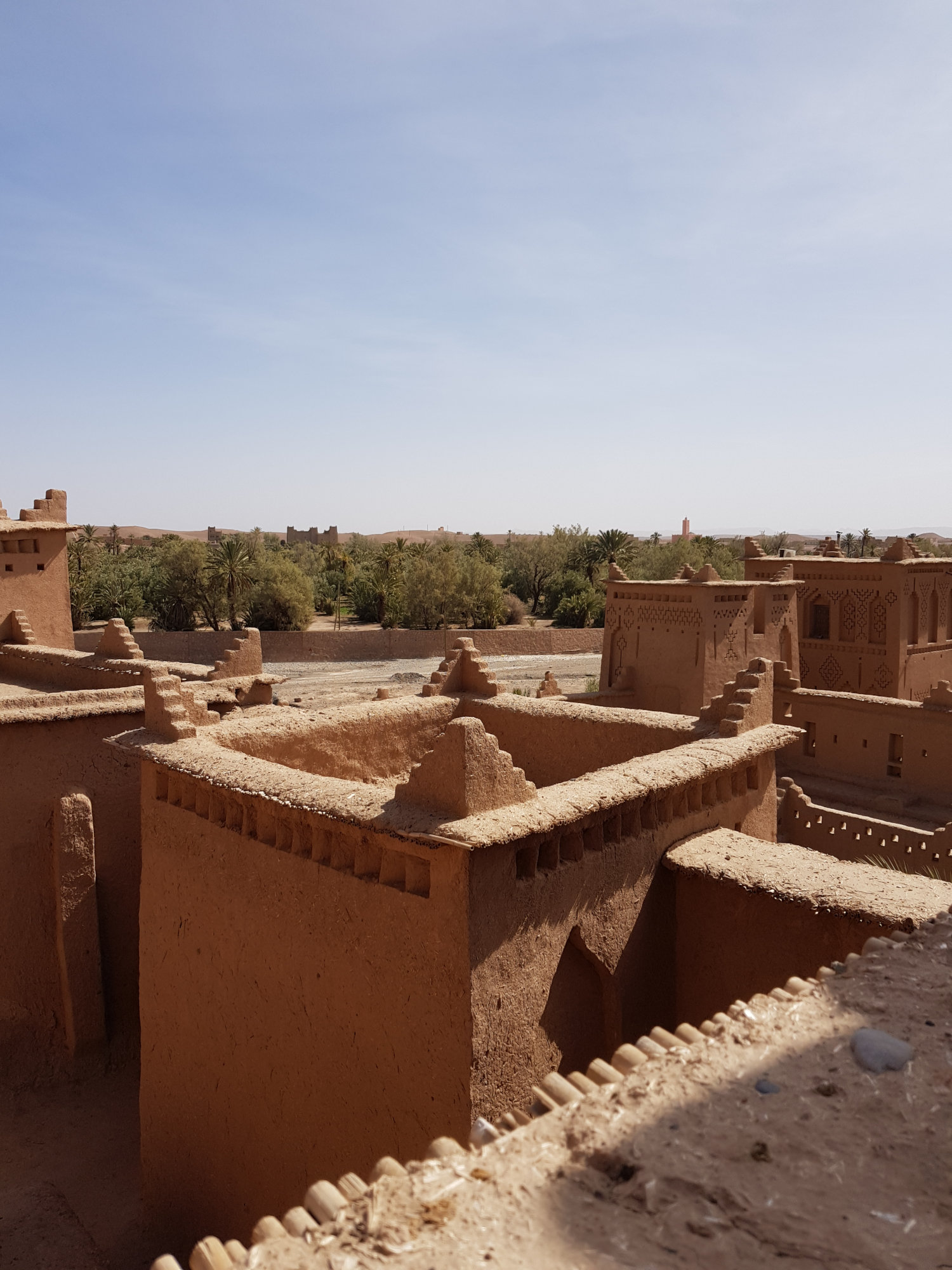 In den kommenden Tagen fahren wir entlang der Straße der Kasbahs durch den Hohen Atlas. Kasbahs sind Lehmbauten, die aufgrund des hohen Instandhaltungsaufwandes lange Zeit dem Verfall geweiht waren, als „bessere“ und v.a. langlebigere Bauweisen aufkamen. Doch Dank ein paar cleveren Marokkanern, die die Lehmbauten als Touristenattraktion identifiziert haben, werden immer wieder Kasbahs renoviert und aufgebaut und entweder als Museum oder Hotel umfunktioniert. Die dicken Lehmwände sorgen dabei im heißen Sommer für angenehme Kühle und auch sonst ist die Bauweise neben seiner Funktionalität wunderschön anzusehen – wie wir in Skoura bei der Besichtigung der Kasbah Amridil uns selbst überzeugen können.