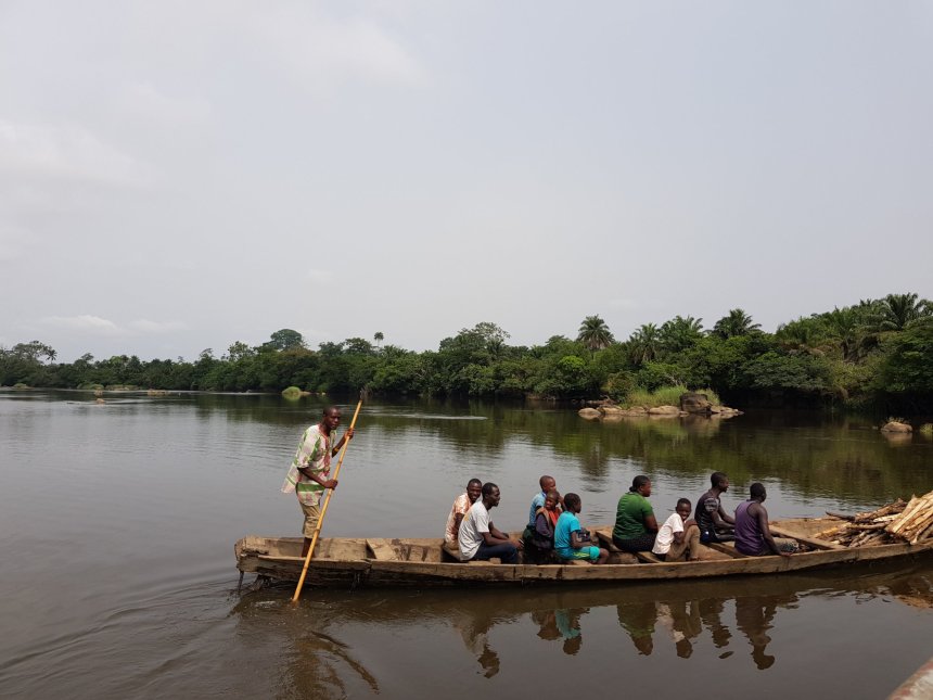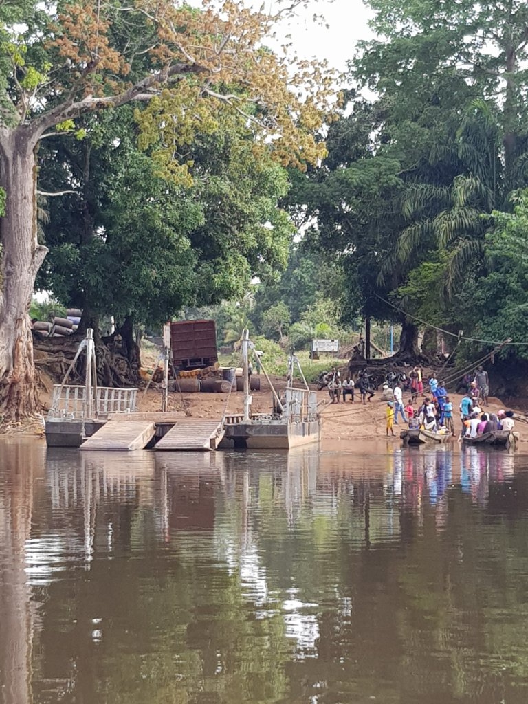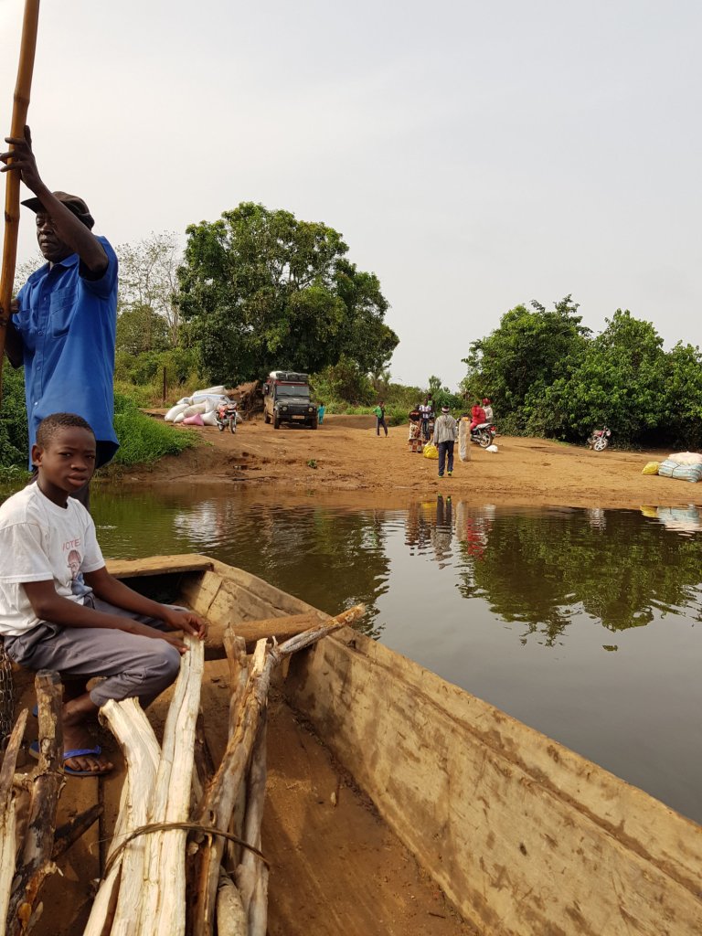 Die richtigen Personen für die Pass- und Autopapierbearbeitung werden ausfindig gemacht und gebeten uns ausreisen zu lassen. Allerdings ist dies ein mehr als mühsamer Prozess, da zuerst der Chef der Immigration angerufen werden muss und die offizielle Vorgehensweise bei Touristen erfragt werden muss. Jeder Schritt wird dann per Handy fotografiert und an den Chef per WhatsApp zur Kontrolle weitergeschickt. Dabei ist der Analphabetismus des bearbeitenden Beamten leider nicht von Vorteil. Am liebsten würden wir ihm anbieten, dass wir die Schreibarbeit übernehmen, aber das könnte falsch aufgefasst werden. So üben wir uns mal wieder in Geduld und warten, bis der 1-stündige Ausreiseprozess abgeschlossen ist und wir nach Guinea weiterfahren dürfen. Doch dies war erst der Anfang des Grenzübertritts. Da Sierra Leone und Guinea an dieser Grenze durch einen breiten Fluss getrennt sind, ahnen wir bereits, dass noch eine Herausforderung auf uns wartet.