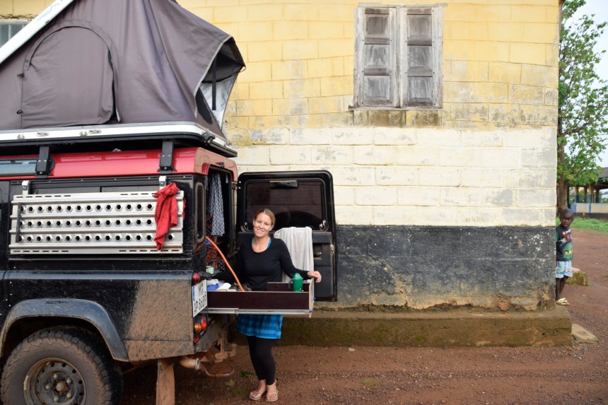 Dieses sieht mehr als verlassen aus und lediglich ein paar Kindern sind ausfindig zu machen. Da deren Eltern scheints nicht in der Nähe sind, verständigen wir uns mit ihnen auf einen Preis und sie bringen uns Duschwasser in eine der verfallenen und vernachlässigten Häuschen, die wohl früher als Bungalowunterkünfte genutzt wurden. Eine Bucket-Shower und eine warme Mahlzeit später klettern wir abends ziemlich erschöpft in unser Dachzelt. Manchmal kann man abends gar nicht begreifen, wie viel und was man alles an einem einzigen Tag erlebt hat. Naja, Hauptsache alles ist gut gegangen!