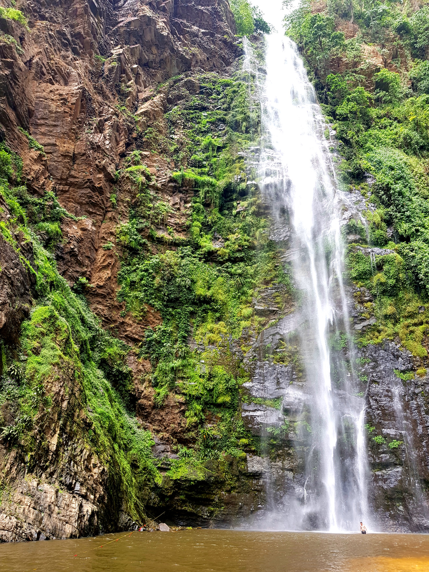 Diese wunderschönen Wasserfälle lassen sich über eine kurze Wanderung erreichen und man kann unter ihrem beindruckenden Wasserschwall duschen. Zusammen mit einigen einheimischen Touristen wagen wir uns unter die Naturdusche, die mit ziemlicher Gewalt herabrauscht und einem auf Kopf und Rücken prasselt. Ein einzigartiges Erlebnis, auch wenn die Wasserqualität aufgrund der tausenden in den steilen Felswänden lebenden Fledermäusen fraglich erscheint. Auch erfahren wir nach unserem Bad im Wasserfallwasser, dass viele Kranke auf die Heilkräfte des Wassers vertrauen und daher zur Heilung diverser Krankheiten dort ein Bad nehmen. Lieber nicht länger darüber nachdenken…