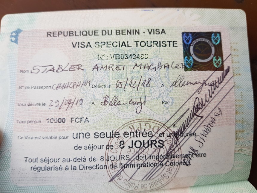 Als wir uns zu den beiden beninischen Uniformierten gesellen, um ein Touristenvisum für 8 Tage zu beantragen, schauen sie uns nur misstrauisch an und fragen, wo wir denn in Benin hinfahren möchten. „Cotonou“, die Hauptstadt von Benin, lautet wahrheitsgemäß unsere Antwort. Doch das stimmt die beiden ganz und gar nicht zufrieden, sondern macht sie sogar noch misstrauischer. Kein Tourist würde freiwillig in die chaotische Hauptstadt fahren und überhaupt möchten sie uns kein Visum ausstellen, lautet daher ihre barsche Antwort. Wir können unseren Ohren nicht trauen – das soll wohl ein Witz sein! Unsere Freunde Amy & Christos waren erst zwei Tage zuvor über die gleiche Grenze gefahren und hatte von einem problemlosen Grenzübertritt und Visumbeantragung berichtet. Ob wohl die gestrige Wahl den beiden Beamten nicht gefallen hat? Oder war es das Mittagessen, das ihnen nicht geschmeckt hat? Man weiß es nicht – auf jeden Fall bleiben die beiden stur.