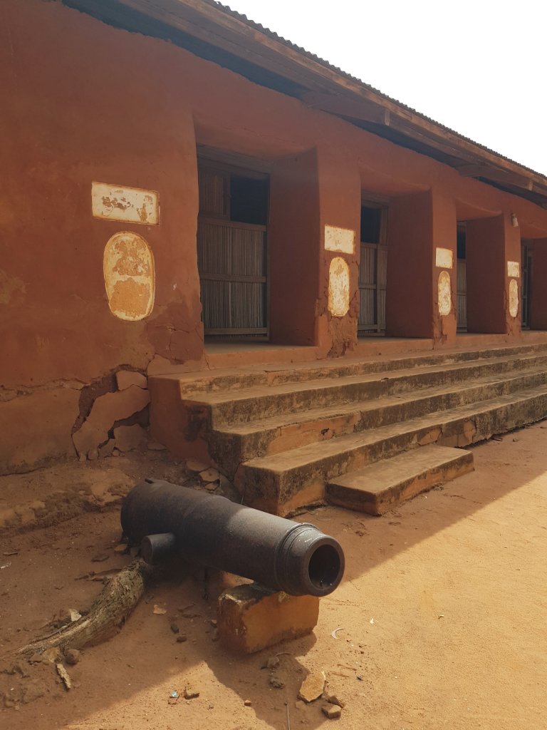 Wir kommen schließlich an zwei Steinen vorbei, die vor einer kleinen Hütte aufgestellt sind. Unser Guide erklärt uns, dass diese vor dem Aufbruch in den Krieg aufgesucht wurden, um die Messer der Kämpfer zu schärfen. Dabei mussten die Krieger jeweils versprechen, was sie aus dem Krieg mitbringen würden. Versprach zum Beispiel einer der Kämpfer, dass er zwei Feinde töten würde und er kam nur mit einem Feindeskopf zurück, wurde er selbst einen Kopf kürzer gemacht. Später, so erklärt uns der Guide, wurden die Feinde nicht mehr skalpiert, sondern am Leben gehalten, um sie als Sklaven gegen Handelsgüter aus Europa einzutauschen. Vor allem die Portugiesen waren hierbei die stärksten Abnehmer der menschlichen Ware.
