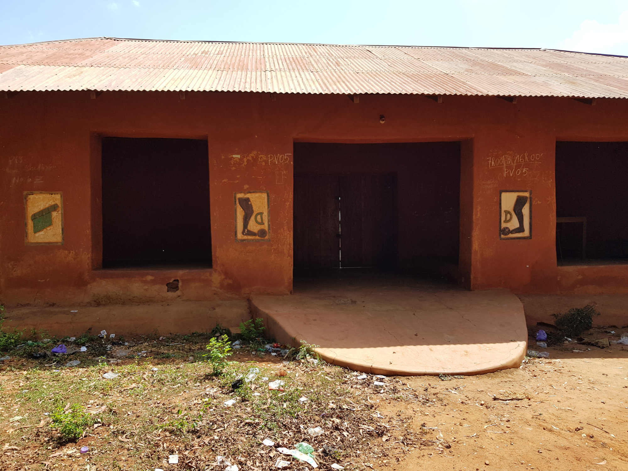 In Abomey, der früheren Hauptstadt des Königreichs Dahomey, werden wir früh morgens von dem Geräusch eines Reisig-Besens geweckt. Eine der Hotelangestellten macht sich dabei emsig daran, den Parkplatz zu kehren und scheint besonders gründlich neben unserem Auto zu sein. Es gibt schlimmere Geräusche, von denen man aufgeweckt werden kann, aber die Putzaktion direkt neben unserem Schlafplatz war einfach unnötig.