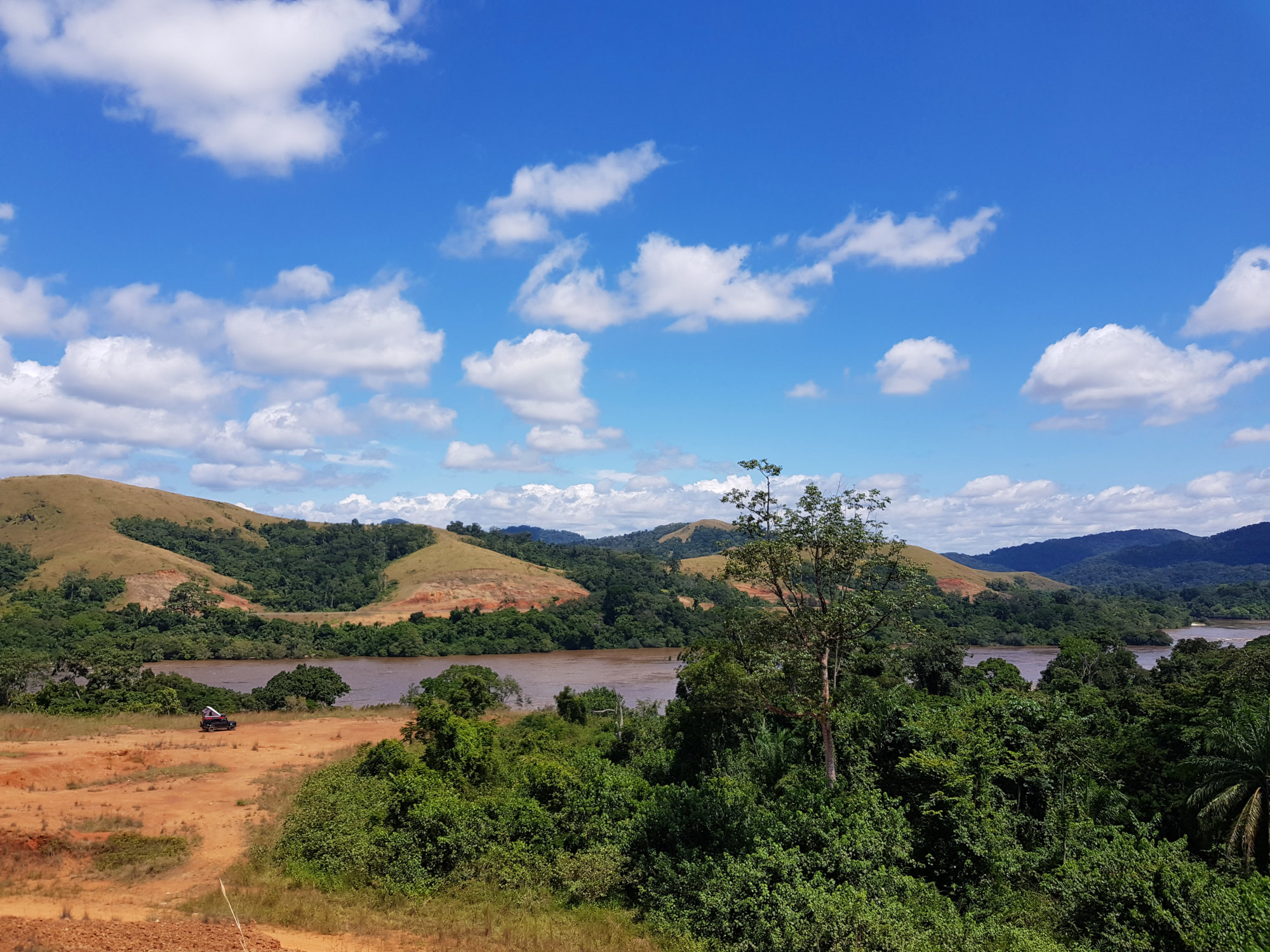 Ziemlich geknickt verlassen wir schließlich das Dorf. Auch der Plan zumindest noch ein schönes zweites Frühstück am Fuße des Flusses im Hotel de la Lope zu uns zunehmen, verläuft ins Leere. Keiner der zig Angestellten, die das riesige Hotelareal, das primär von Gästen, die sich per Helikopter einfliegen lassen, angesteuert wird, pflegen, schenkt uns Beachtung. Die Frage nach Frühstück bzw. einem Kaffee wird zwar mit einem Kopfnicken bestätigt, allerdings werden wir dann alleine zurückgelassen ohne eine Speisekarte oder ähnliches angeboten zu bekommen. Wir laufen noch ein wenig über das große und traumhaft oberhalb des Ogooué-Flusses gelegene Hotelareal, das auch schon mal bessere Zeiten gesehen zu haben scheint, um dann unverrichteter Dinge wieder zu fahren. Wenn sie uns nicht als Gäste empfangen wollen, dann wissen wir unser Geld woanders besser auszugeben.