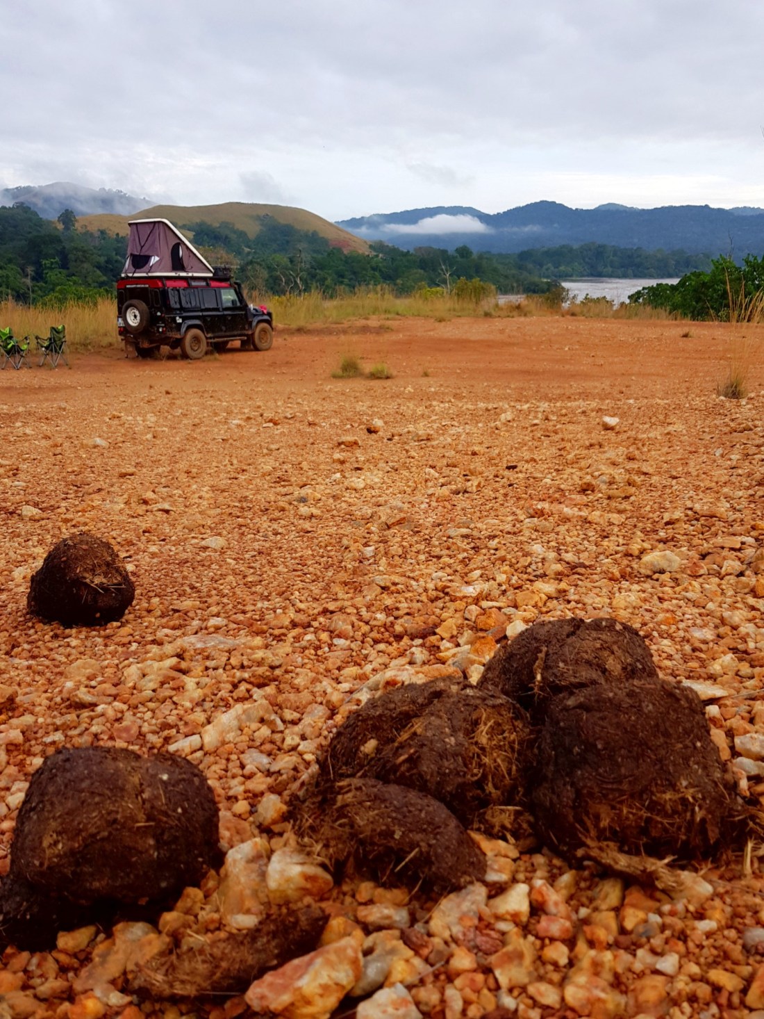 Abends gibt es wieder ein großes Lagerfeuer, um ungebetene tierische Gäste fernzuhalten. Nachdem wir genüsslich unsere Knorr Asia Fertignudeln verputzt haben und uns die Äste zum Befeuern der Flammen ausgehen, ziehen wir uns schnell in unser Dachzelt zurück. Man weiß ja nicht, was für ein Getier hier im wilden Busch Gabuns noch so rumschleicht und auf leichte Beute wartet!