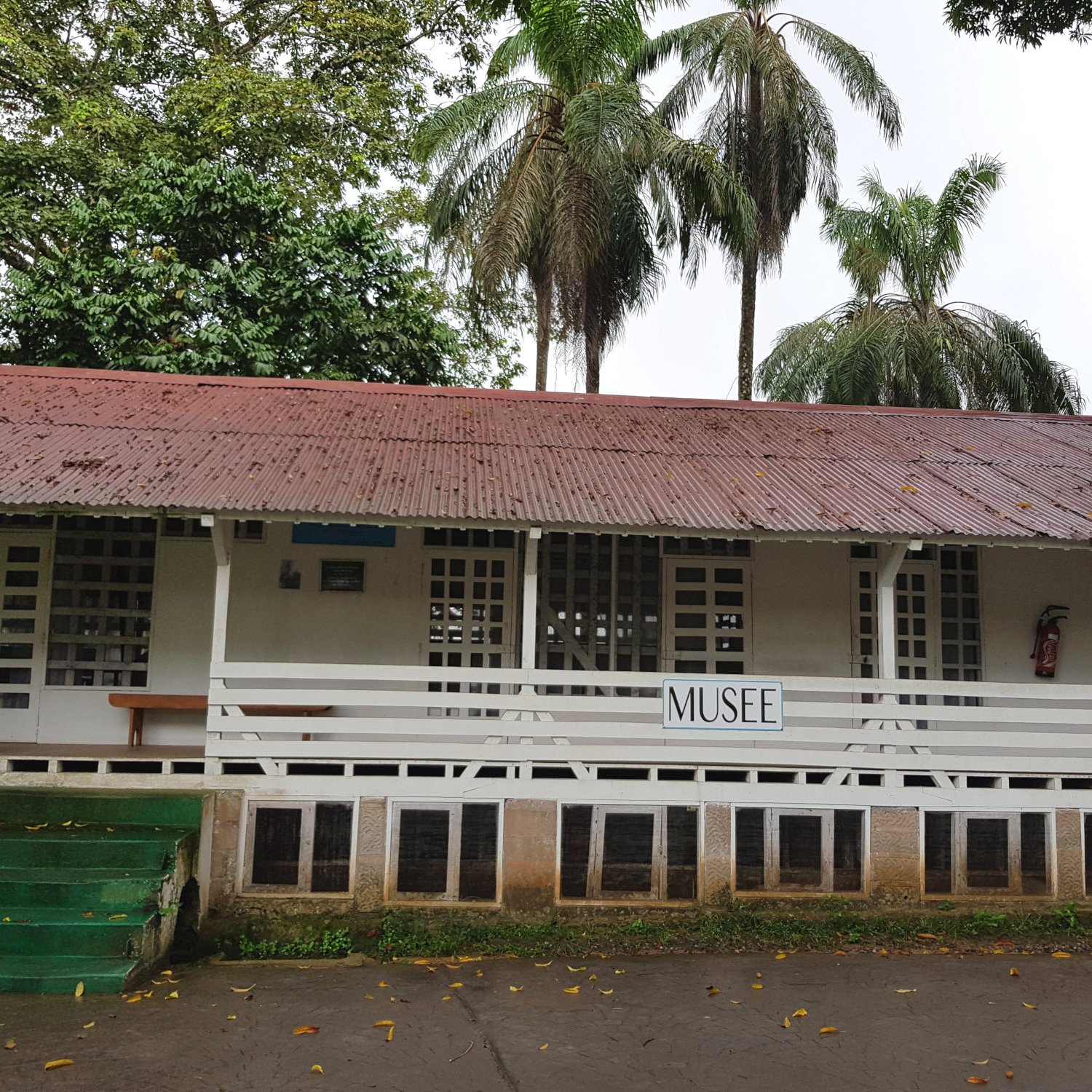 Trotz des Dauerregens wollen wir uns nicht davon abhalten lassen Lambaréné etwas genauer unter die Lupe zu nehmen und auf Erkundungstour zu gehen. Diese geschichtsträchtige Stadt, die vor allem durch das Schaffen von Albrecht Schweitzer in der ganzen Welt eine gewisse Berühmtheit erlangt hat, sollte man – wenn man schon einmal vor Ort ist – besichtigen. Doch da das Albert-Schweitzer-Museum erst gegen 9 Uhr öffnet, beschließen wir das gestrige Frühstück, das uns im Hotel de la Lope verwehrt blieb, nun in Lambaréné nachzuholen und steuern dafür ein ordentlich aussehendes Hotel direkt am Wasser des Flusses Ogooué an. Zwar schwirren hier analog zum Vortag wieder etliche Angestellte durch die Gegend, doch auch hier scheint man nicht sonderlich großes Interesse an Tagesgästen zu haben. Erst nach aktiver Nachfrage nach einer Speisekarte, dürfen wir ein Frühstück bestellen. Leider ist der Ausblick vom Wintergarten des Hotels aus ähnlich grau und verhangen, wie der Himmel des heutigen Tages und macht den trockenen Toast und den lauwarmen, überteuerten Kaffee nicht gerade schmackhafter. Doch uns ist bewusst, dass dieses Jammern tatsächlich ziemlich unangebracht ist, wenn man bedenkt, dass mehr als 30% der Bevölkerung in Gabon noch immer weit unter der Armutsgrenze lebt. Daher wird der Buttertoast ohne großes Murren mit dem lauwarmen Kaffee runtergespült und auf geht’s in Richtung Albert Schweitzer Museum.