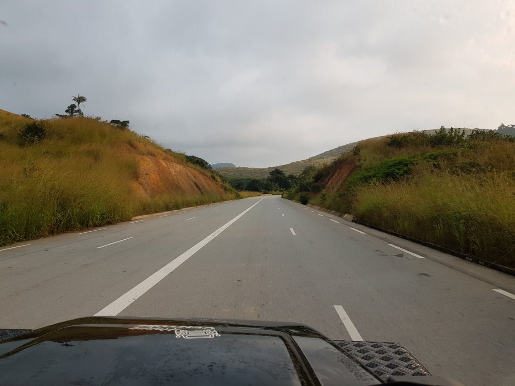 Man wolle hier kein diplomatisches Fass aufmachen und ihnen seien daher die Hände gebunden. Also müssen wir unser Glück wohl ohne diplomatische Hilfe in die Hand nehmen. Wir fassen den Entschluss, am nächsten Tag zuerst die angolanische Botschaft in Dolisie für die Beantragung eines Visums und im Anschluss die kleinste zwischen der Republik Kongo und der DRC existierenden Grenze anzusteuern. Mit dem Risiko auch dort abgewiesen zu werden, aber mit der Hoffnung, dass an dieser Grenze kaum Touristen angekommen und auch die Kommunikation mit den örtlichen Behörden so unterentwickelt ist, dass die Nachricht Touristen mit einem außerhalb des eigenen Landes ausgestellten Visums nicht durchzulassen, dort noch nicht durchgedrungen ist. Also brechen wir am frühen Nachmittag bei Johanny auf und schlagen unser Nachtquartier auf dem einzigen öffentlichen Parkplatz zwischen Pointe-Noire und Dolisie auf. Der Parkplatz, der als „Panorama-Parkplatz“ ausgeschrieben ist, wird seinem Namen nicht gerecht: kein Panorama, dafür ordentlich Lärm der vorbeidonnernden Laster hält uns in dieser Nacht lange vom Einschlafen ab.