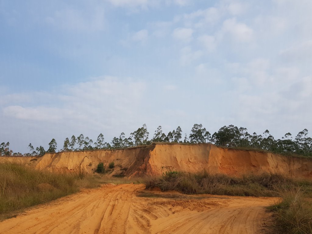 Wir machen uns also ohne Frühstück auf in Richtung Diosso. Hier soll, etwas nördlich von Pointe-Noire gelegen, der Grand Canyon des Kongos zu sehen sein, der aufgrund starker Erderosion aus roten Sandsteinklippen besteht und neben seinem faszinierenden Anblick traurige Berühmtheit erlangt hat, da hier die Regierung zig Tonnen Giftmüll bedenkenlos entsorgt haben sollen – die Regierung der Republik Kongo streitet das bisher ab. Die vermeintlichen Abkürzungen, die wir auf der Strecke gen Küste immer wieder versuchen zu nehmen, stellen sich ausnahmslos als Sackgassen heraus, weshalb wir erst nach einigen Irrfahrten und deutlich später als geplant Pointe-Noire und damit die Atlantikküste erreichen.