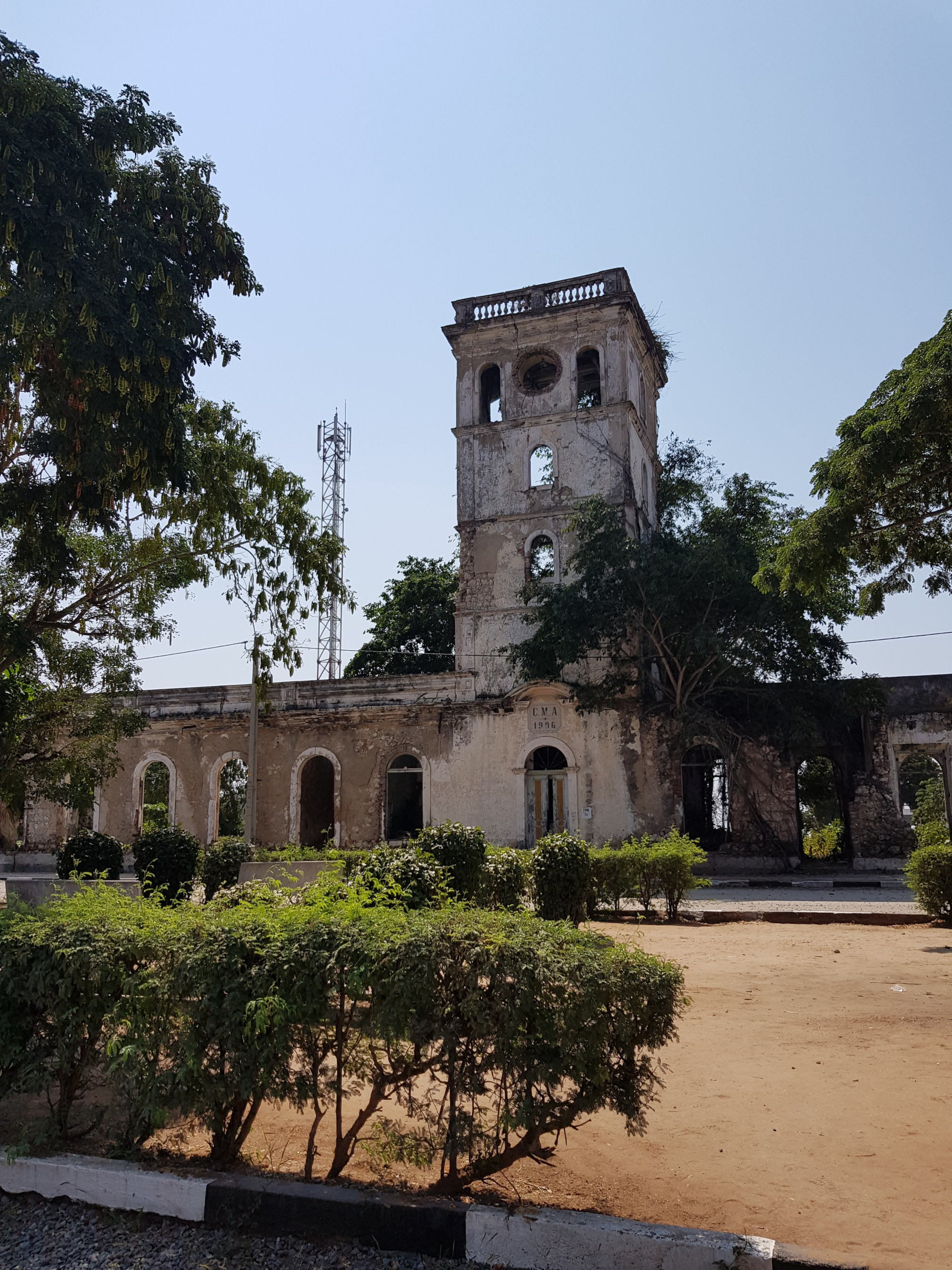Nach diesem guten Start in den Tag, fahren wir am späten Vormittag los in Richtung der Stadt Ambritz. Diese am Meer gelegene und von der Fischerei geprägt Stadt begeistert uns mit seinen baulichen Relikten aus der portugiesischen Kolonialzeit. Überall entdeckt man noch große, herrschaftliche Gebäude. Die Stadt wurde leider während des letzten Bürgerkrieges stark in Mitleidenschaft gezogen und aufgrund seiner strategischen Wichtigkeit weiträumig vermint, weshalb ein Großteil der Bevölkerung damals geflohen war. Wie viele seit dem Ende des Krieges (2002) hierher wieder zurückgekehrt sind, können wir nicht sagen. Wir sind auf jeden Fall positiv angetan von dem schönen Städtchen mit den breiten Straßen und den vielen Schulklassen, die wir am Straßenrand entlanglaufen sehen.