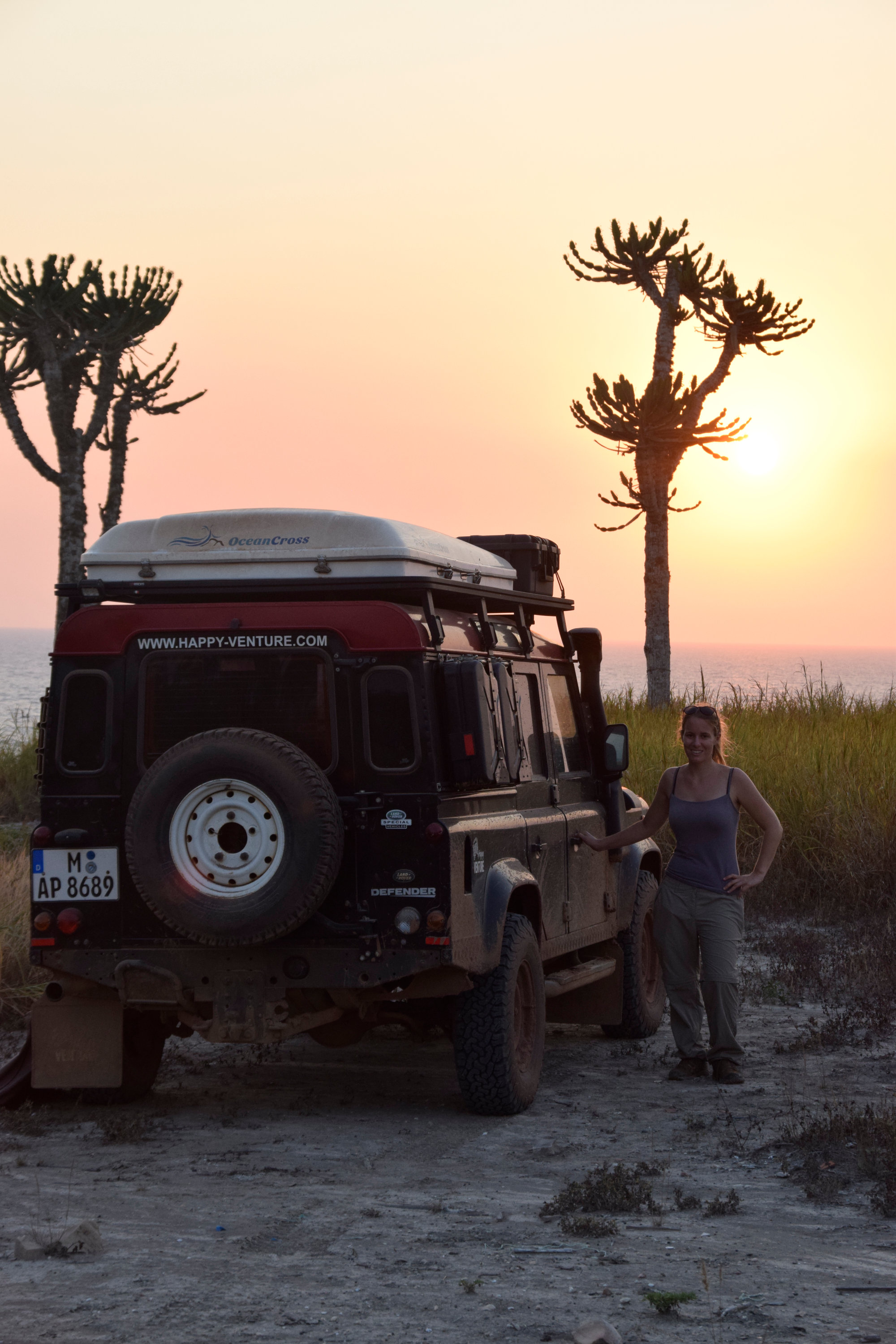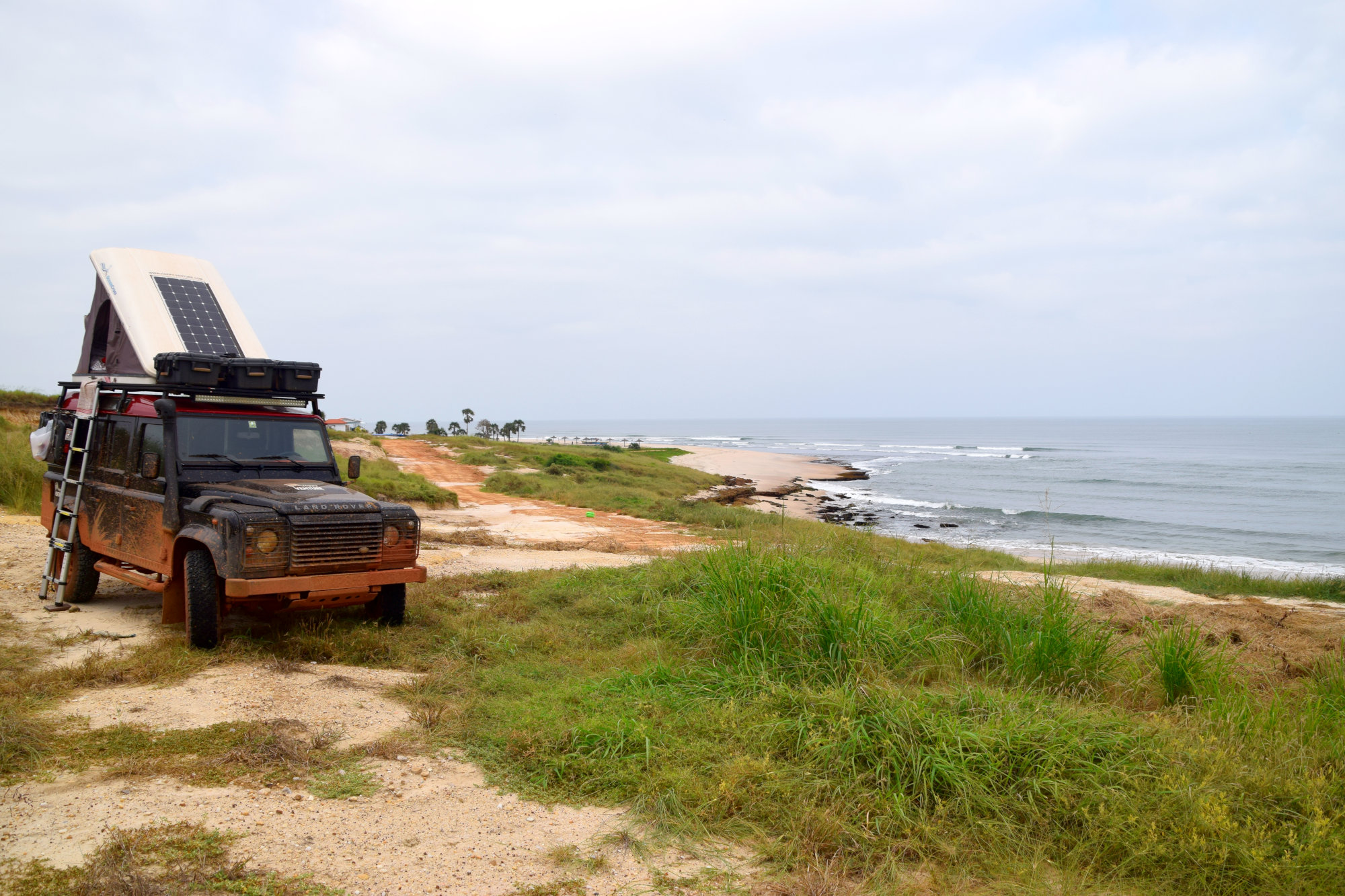 Am Strand angekommen, entdecken wir die Ecologe. Dabei handelt es sich um eine sehr hübsche und gepflegt anmutende kleine Anlage, die somit perfekt für ein bis zwei Tage Erholung von meiner Malaria-Erkrankung gewesen wäre – allerding scheint sie derzeit verlassen zu sein. Lediglich ein paar Handwerker laufen auf dem weitläufigen Gelände herum, aber weder Restaurant noch die kleinen Bungalows sind geöffnet. Anstatt einer ausgiebigen Dusche und einem weichen Bett, suchen wir uns mal wieder einen ebenerdigen Wildcamping Stellplatz in der Nähe der Lodge, wo ich mich leidend im ca. 40 Grad warmen Dachzelt hin-& herwälze und versuche etwas Schlaf zu finden & Energie zu tanken. Max ist zurecht genervt, da er so gut wie möglich versucht mich aufzupäppeln, während ich bis auf ein paar trockene Nudeln, einem undurchschaubaren Medikamenten-Cocktail, den man mir im Krankenhaus in der DRC verschrieben hat und diversen Fruchtsäften, seit gut einer Woche keine Nahrung mehr zu mir genommen habe und auch weiterhin jegliche Bemühungen seinerseits, mich zum Essen zu ermutigen, ablehne.