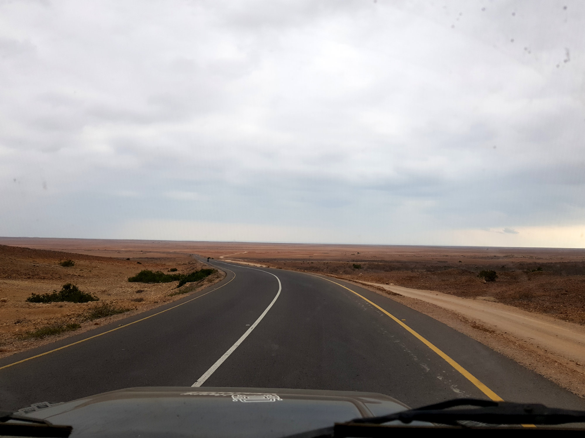 Bei der sehr beschwerlichen Fahrt in Schneckentempo zieht die Landschaft nur sehr langsam an uns vorbei und gibt uns die Gelegenheit wilde Böcke am Wegesrand zu erspähen. Die Landschaft wird hügeliger und liegt malerisch, wie gezeichnet, vor uns. Nachdem wir die ersten Hügel überwunden haben, sehen wir vollkommen unerwartet vor uns eine neu geteerte und makellose Asphaltstraße zusammen mit einer nagelneuen Tankstelle. Es wirkt so surreal – als hätte man versehentlich 100 Kilometer Hauptstraße vergessen zu bauen, die eigentlich den Nord-& Südteil des Landes problemlos verbinden und den Warenfluss vereinfachen könnte. Wie kann es sein, dass ein eigentlich reiches Land wie Angola (zumindest was seine Rohstoffvorkommen angeht) es nicht fertig bringt, diesen wichtigen Streckenabschnitt infrastrukturell so zu verbinden, um damit eine wirtschaftliche Schwachstelle zu schließen? Uns bleibt nicht viel Zeit darüber den Kopf zu schütteln. Vielmehr genießen wir den glatten Asphalt unter Rotkäppchens Reifen und fahren weiter gen Süden, durch kaum bewohntes oder gar bewirtschaftetes Land, das einer Wüstenlandschaft gleicht.