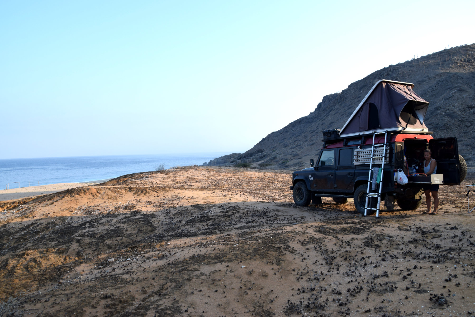 Nachdem wir noch etwas Treibholz am Meer gesammelt haben, um ein kleines Feuer zu entfachen, bricht schon die Dunkelheit über uns herein und wir klettern kurze Zeit später ins Dachzelt, um erneut unter Meeresrauschen einschlafen zu dürfen.