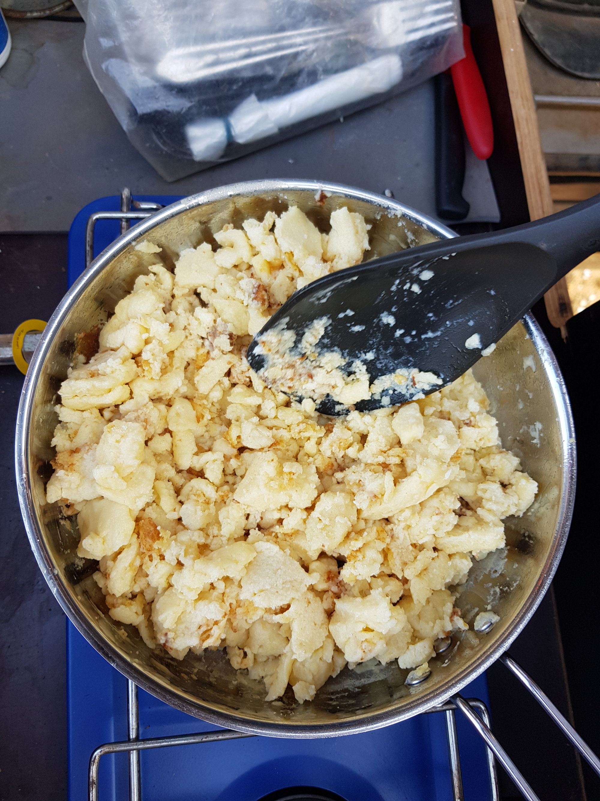 Aber first things first: Frühstücken. Und was könnte es Besseres an einem derart schönen Morgen geben, als an diesem beeindruckenden Platz Kaiserschmarren zu machen?