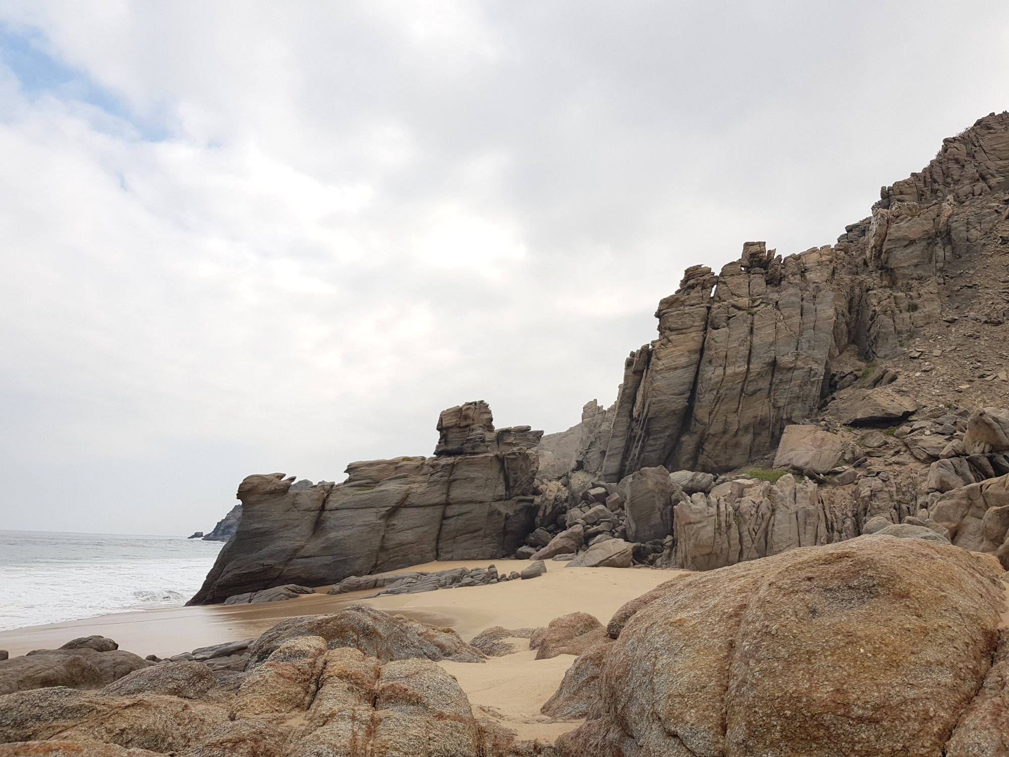 Das Rauschen der Brandung holt uns bei Sonnenaufgang aus dem Schlaf. Als wir den Kopf aus dem Dachzelt strecken, liegt die einsame Bucht von Binga uns zu Füßen und trotz der noch vorherrschenden Morgenkälte können wir es kaum erwarten im Hellen die Bucht zu erkunden.