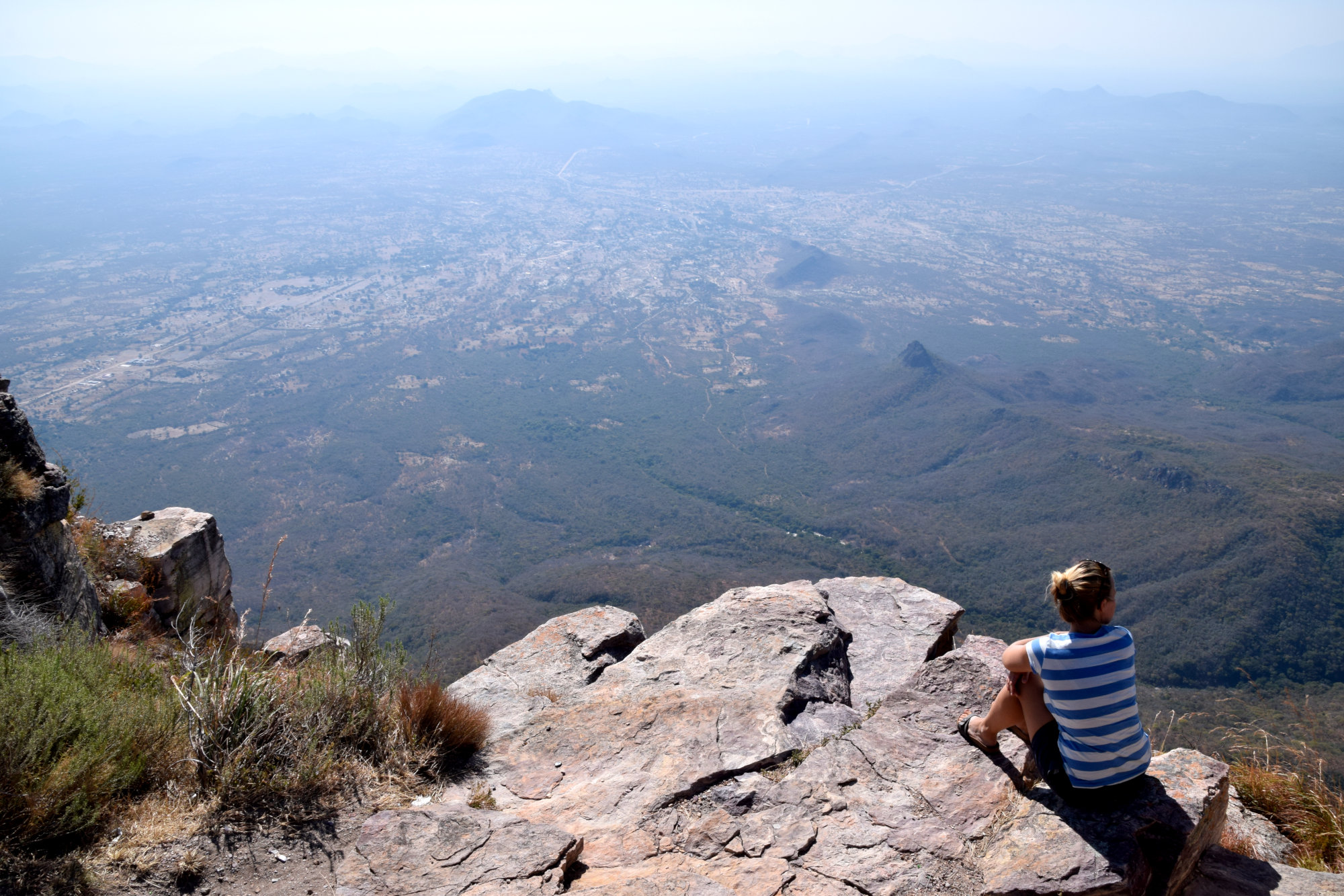 Doch bis die Nacht über uns hereinbricht bleiben noch einige Stunden und wir versuchen die negativen Gedanken und das etwas mulmige Gefühl uns für die Nacht aufzusparen und den Moment zu genießen. Mit Fernglas, einem Bier und Pfefferspray bzw. Max mit einem Messer zur Verteidigung bewaffnet, beobachten wir die Landschaft, die großen Vögel, die über dem steilen Abhang kreisen und die immer tiefer stehende Sonne. Dieser Camping-Spot wird wohl neben dem Ort Tafraoute in Marokko mit den großen bunten Felsen in die Liste der beeindruckendsten Übernachtungsorte unserer Afrika-Reise eingehen.